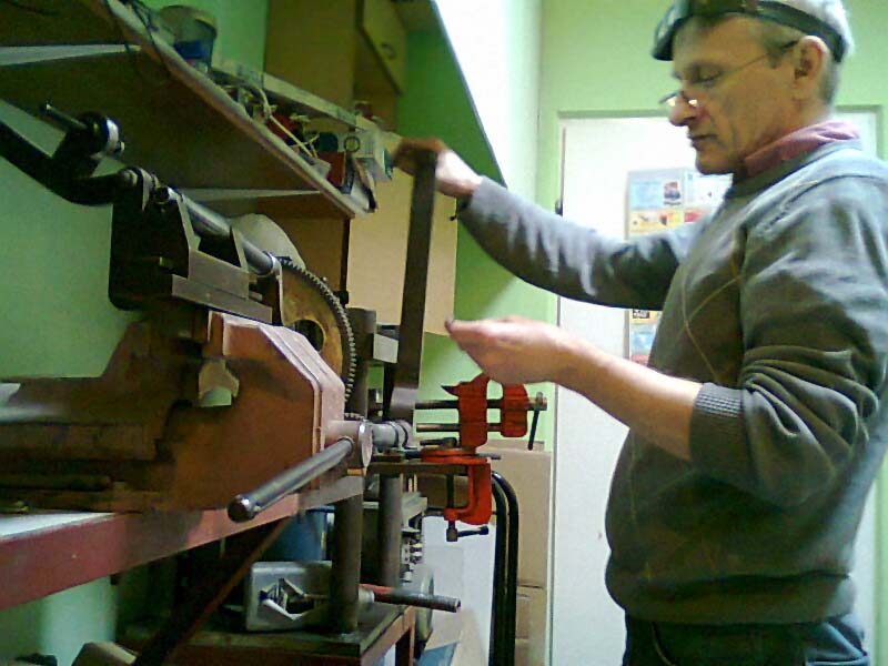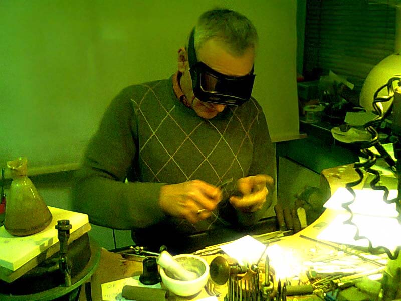 Podczas naszej rozmowy w rękach Andrzeja pojawiały się coraz to inne narzędzia, którymi obrabiał niepozorny kawałek metalu, wytopiony wcześniej w tyglu. Rozpoznałem różnej wielkości pilniczki, jakoweś szczypczyki, ściski, pensety, kolekcję młoteczków (niektóre tak małe, że chyba do podkuwania motyli).