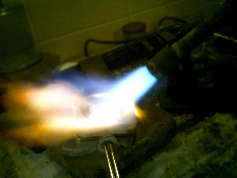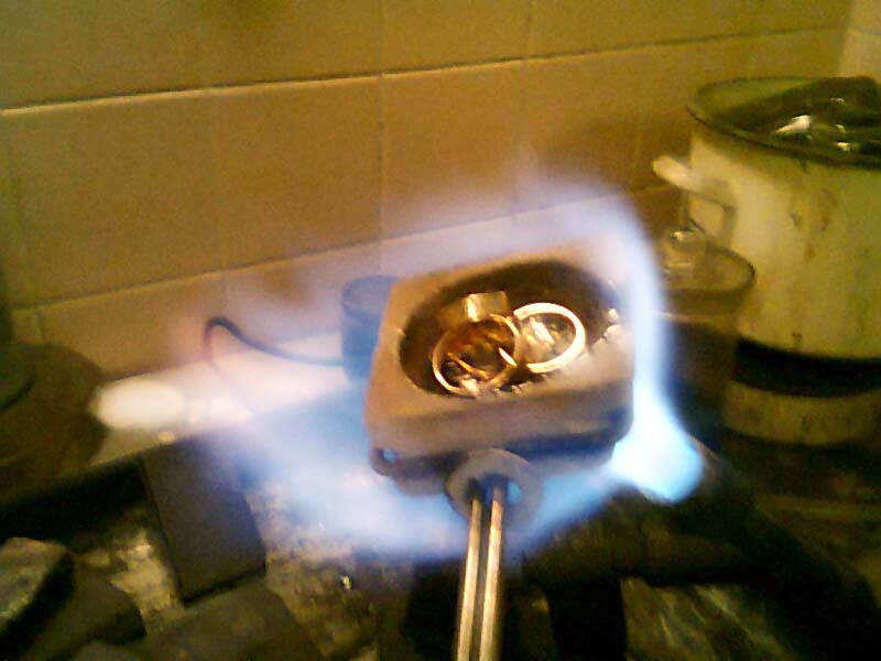 Dla lepszej orientacji geograficznej - firma Andrzeja mieści się w Połczynie-Zdroju przy ulicy 5 Marca, skrzyżowanie z Grunwaldzką, znakomicie widoczna z połczyńskiego "deptaka" witryna sklepu jubilerskiego. Na tyłach sklepu, w pracowni złotniczej mistrz Andrzej niczym tajemniczy alchemik podgrzewa, topi, lutuje, wyciska, kąpie w kwasach, tłoczy, kształtuje, graweruje, poleruje... aby na końcu ucieszyć nas idealną krągłością i błyskiem obrączki, czy pierścionka. Akurat, gdy trafiłem na zaplecze, Andrzej przygotowywał nowy wyrób, zastałem go przy wytapianiu złota w specjalnym, ceramicznym tyglu. Płomień palnika chuczał jak silnik odrzutowy, ciepło i światło bijące od rozrzażonego metalu robiło niezwykłe wrażenie. Po chwili na dnie tygla utworzyło się jeziorko roztopionego złota.