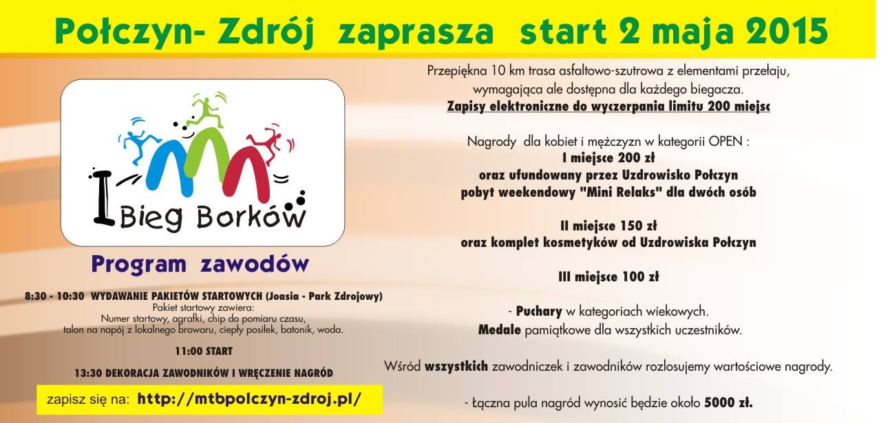 Miłym dodatkiem do majowego święta będzie Bieg Borków na dystansie 10 km, organizowany przez miasto i połczyńskie firmy - 2 maja 2015 w okolicznościach parkowej przyrody.